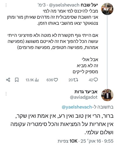 הוויכוח האידאולוגי בין מטה החטופים לפורום תקווה אינו חדש, הוא הוכרע בוועדת שמגר, שהקמפיין להחזרת גלעד שליט והלחצים התקשורתיים שהופעלו על הדרג המדיני פגעו בביטחון. הדתיים השימושיים שהולכים לכיכר החטופים מקבעים נרטיב הרסני ואינם מודעים להשלכות מעשיהם.