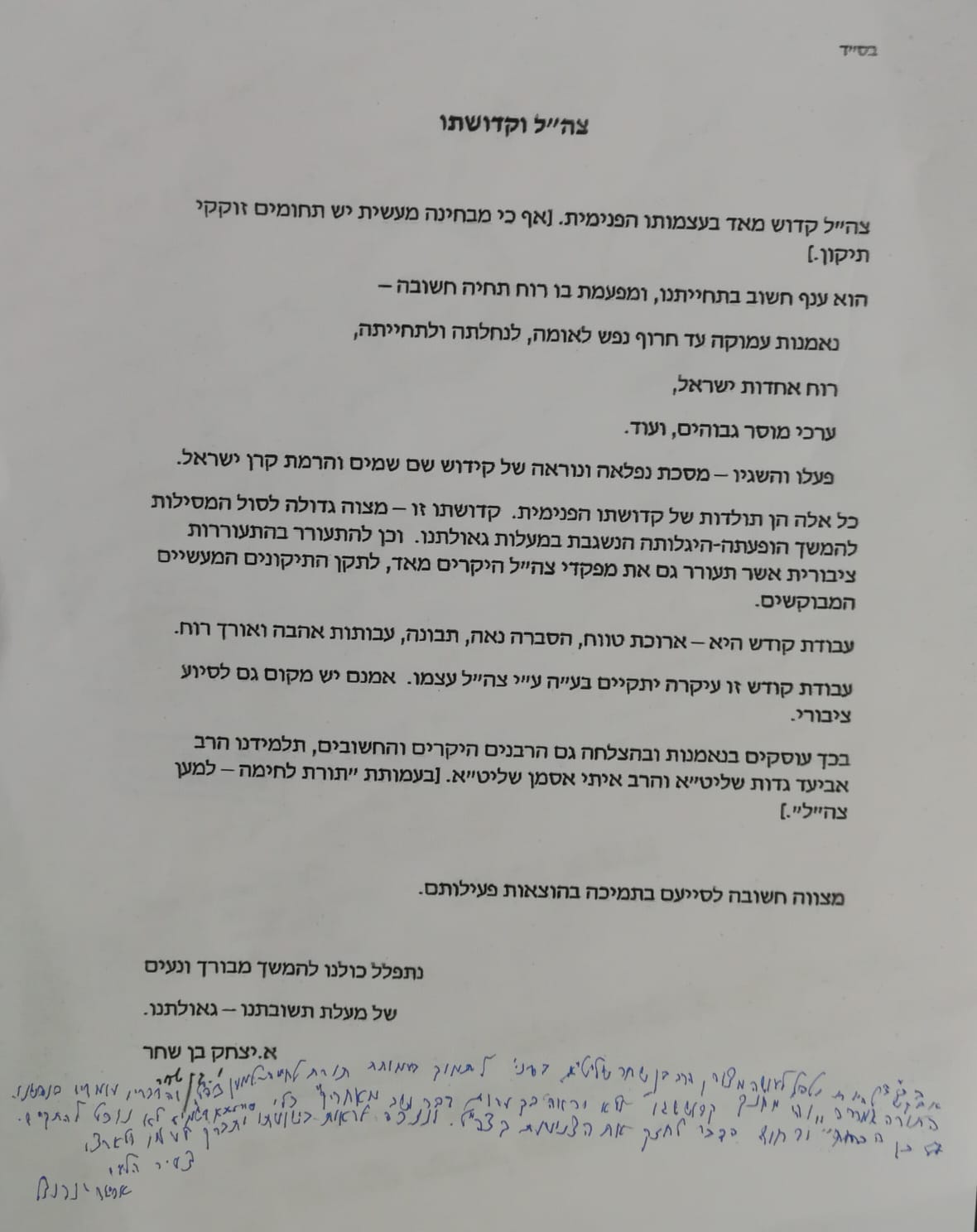 הרה"ג אביגדור נבנצאל שליט"א והרה"ג יצחק בן שחר - רה"י קדומים ,ממליצים על פעילות ארגון תורת לחימה .